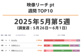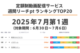 定額制動画配信サービス 週間リーチptランキングTOP20【最新週】
