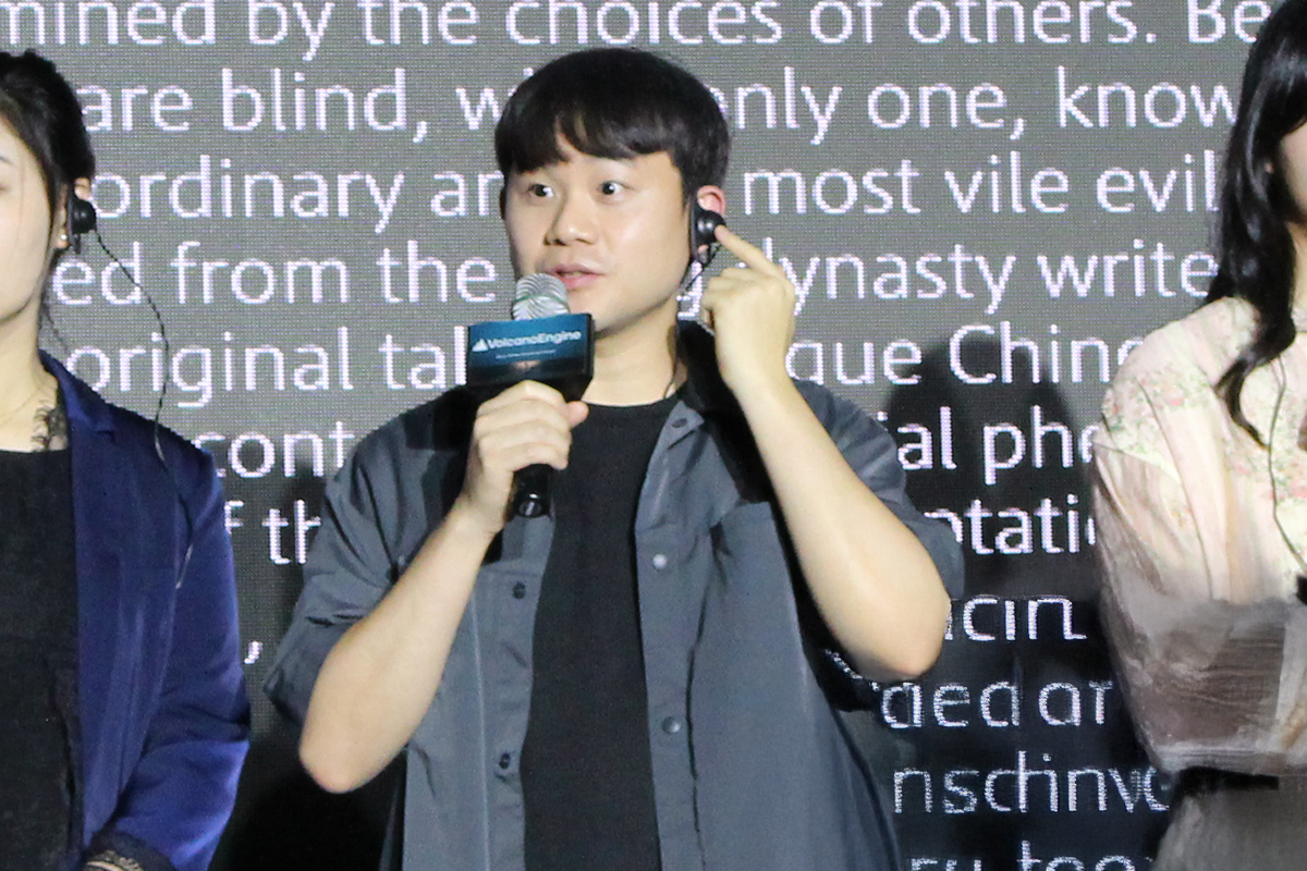 次に、Dreamina AIのプロダクトマネージャーを務めるリン・ジェ氏が、同ツールの最新モデル「OmniHuman 1.5」を紹介。革新的な点として、従来の単なるキャラクター生成である“デジタルヒューマン”ではなく、脚本を自ら理解しキャラクターを演じる“デジタルアクター”を生成できるようになったことを挙げました。「ただセリフを読むだけでなく、ストーリーラインを理解し、キャラクターが話す一言一句に深い意味を持たせて関連したアクションを生成することができます。キャラクターの感情を解釈し、ベテラン俳優のような演技に変換することができるのです」と述べました。