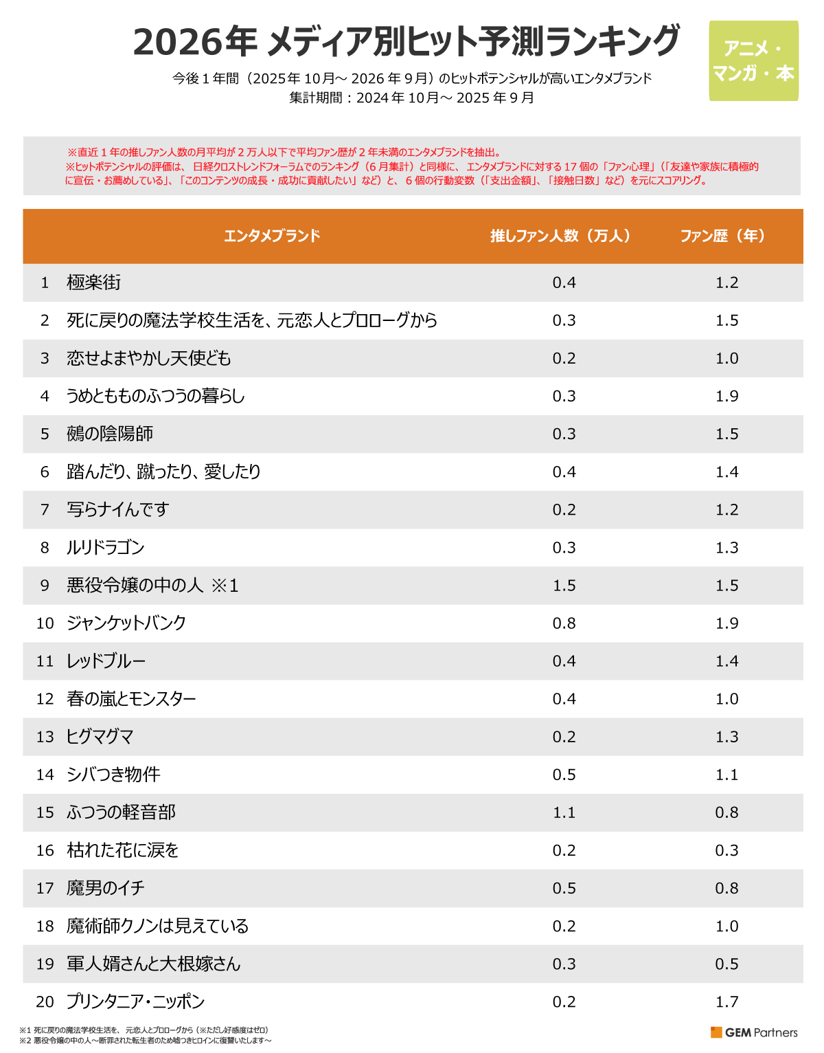 - 第2回:次にヒットするエンタメをタレント、マンガ・アニメ、ゲームなどメディア別でランキング~タレントでは『篠塚大輝』、マンガでは『極楽街』が首位獲得
