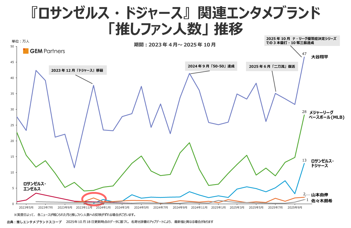 『大谷翔平』『ドジャース』『MLB』の「推しファン人数」が最高値を記録