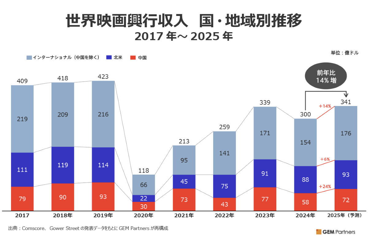 世界興行収入の状況:グローバル全体は道半ばだが、日本は突出した成長を見せる