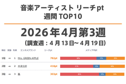 音楽アーティスト リーチpt 週間TOP10【最新週】