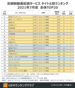 定額制動画配信サービス 週間リーチptランキングTOP20【最新週】
