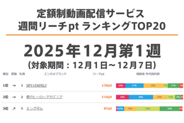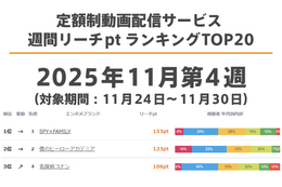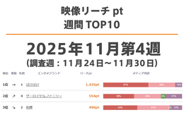 映像 リーチpt 週間TOP10(2025年11月第4週)
