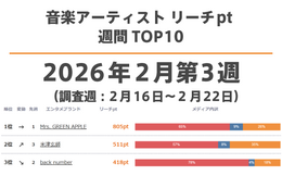音楽アーティスト リーチpt 週間TOP10【最新週】