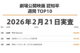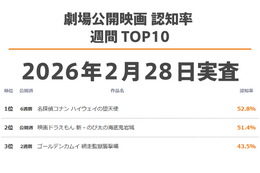 劇場公開映画 認知率 週間TOP10(2026年2月21日実査)