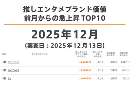 推しエンタメブランド価値 急上昇TOP10(2025年12月)