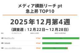 音楽アーティスト リーチpt 週間TOP10(2025年12月第4週)