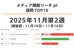 メディア横断リーチpt 急上昇TOP10【最新週】