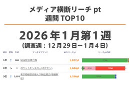 定額制動画配信サービス 週間リーチptランキングTOP20【最新週】