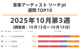 音楽アーティスト リーチpt 週間TOP10【最新週】
