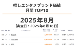 『鬼滅の刃』2カ月連続首位、『Snow Man』過去最高の推しファン人数を記録~2025年9月エンタメブランド調査結果