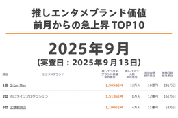 推しエンタメブランド価値 月間TOP10(2024年9月)