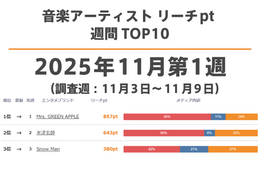音楽アーティスト リーチpt 週間TOP10【最新週】