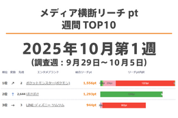 メディア横断リーチpt 週間TOP10(2025年9月第4週)