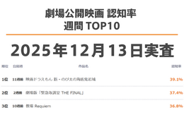 劇場公開映画 認知率 週間TOP10(2025年10月11日実査)