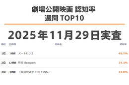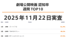 劇場公開映画 認知率 週間TOP10(2025年11月22日実査)