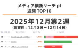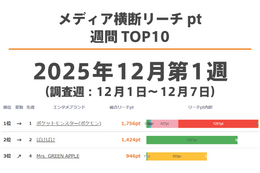 メディア横断リーチpt 週間TOP10(2025年12月第1週)