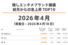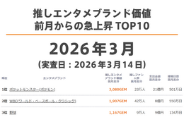 推しエンタメブランド価値 急上昇TOP10(2026年3月)
