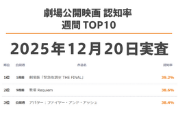 劇場公開映画 認知率 週間TOP10(2025年12月13日実査)