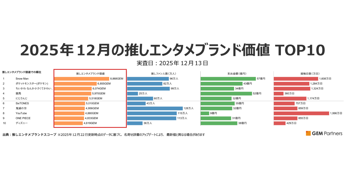 調査月:2025年12月| エンタメブランド | 推しエンタメ ブランド価値 |